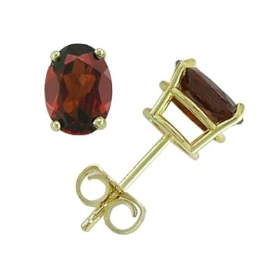These rich red garnet stud earrings are fancy yet classic with a 14k yellow gold setting and an ideal everyday style. The oval 7x5mm gemstones are deep cabernet red with an earthy brown tint and strong color saturation. Popular and durable 14k yellow gold is used for the push backs and the 4-prong settings that secure the facet-cut garnet. Unlike other gemstones, garnets are natural beauties whose consistently deep color needs no manipulating.14k Yellow Gold Four Prong 7x5mm Oval Garnet Stud Earrings