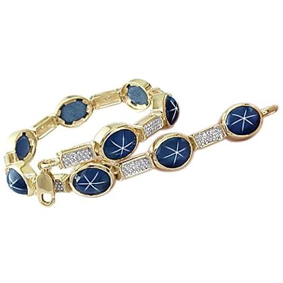 26.75 Carat Star Sapphire And Diamond Bracelet - 14kt Gold.
