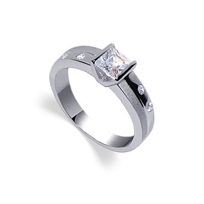 Genuine .925 Sterling Silver Ring with Rhodium polish that will make it look like White Gold. Features Sparkling high quality Princess Cubic Zirconia in the center and two small CZ's on either Sides with Two tone Finish make this a stylish Ring. Suggested Retail price of the ring is about $29.99 and above. You will always find Gem Avenue prices to be better than a bargain, while quality is never compromised.